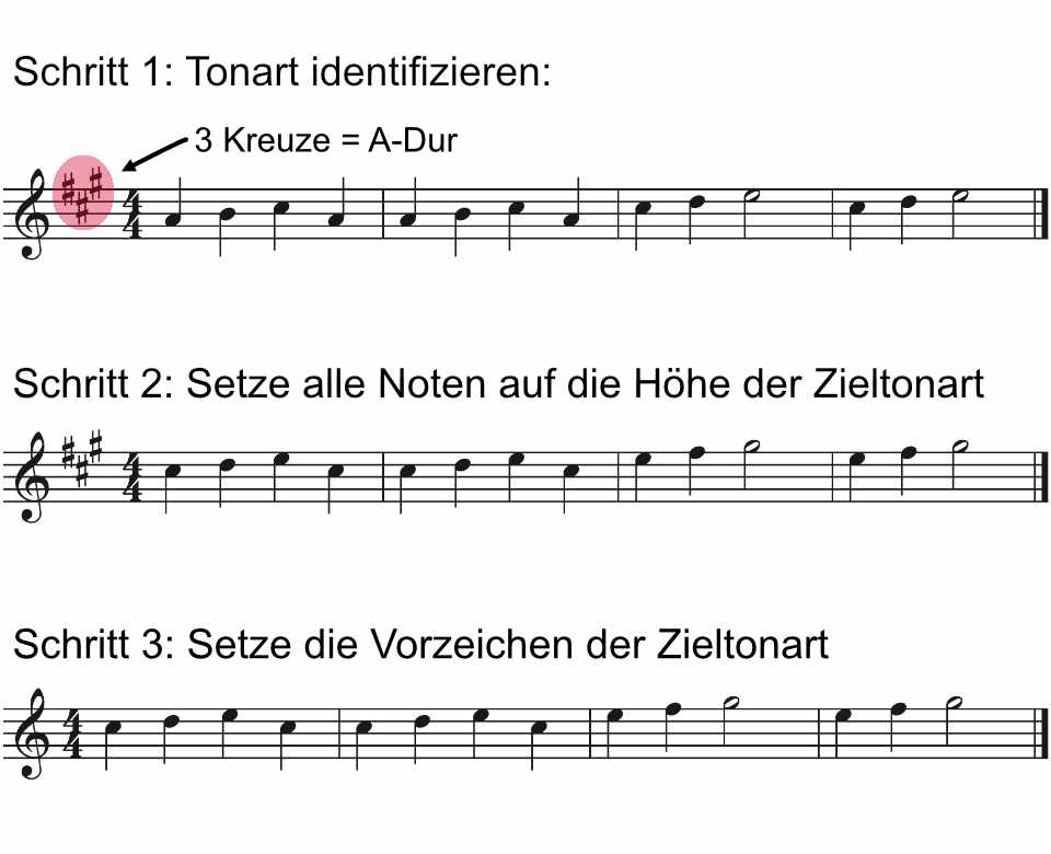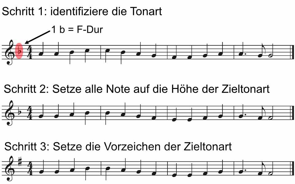 Mit diesem Wissen kannst du jede Melodie in die gewünschte Zieltonart transponieren.