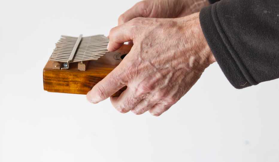Halten und Zupfen einer Kalimba