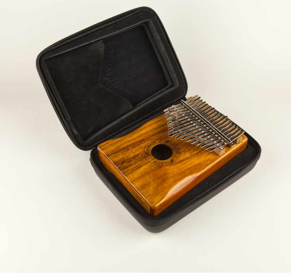- Benutze eine Transporttasche, die Feuchtigkeitsabweisend und gefüttert ist, damit die Temperatur- und Feuchtigkeitsunterschiede beim Transport nur langsam auf die Kalimba einwirken.